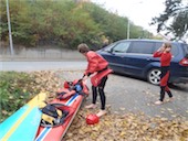 Od Kamenného mlýna na Rivieru. Ema s Matějem jedou na singlech a já na deblu, místo háčka mám tašku s věcmi na převlečení. Problém je, že jsme si do ní nedali boty a ponožky, proto po příjezdu dolů na Riviéru musíme čekat dost dlouho bosky. Teplota je jen něco málo nad nulou a není to tedy nic moc.