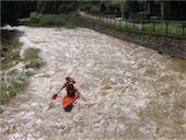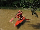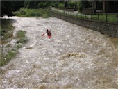 Zcela sami splouváme Loučku, 11-16 kubíků znamená, že je to dost kličkování mezi šutry. Jez v Újezdě přenášíme a jez nad Loučkami a u lomu po mohutném zaskřípění zuby sjíždíme - ty válce nejsou nic moc. Podemletý jez v Loučkách jsem po dlouhé době nepoznal a tak tam šaškujeme, jakobychom čekali, až nás to vtáhne. Asi největší pitomost, co jsem kdy na vodě udělal.