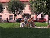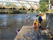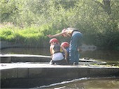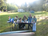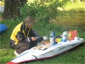 V sobotu večer jsme přejeli do Spolí nad Krumlovem. Byl to naprostý šok, skoro jsme to chtěli vzdát a ranní plavbu Krumlovem odložit na neurčito. Naštěstí nás napadlo se mrknout k Papouščí Skále, kde jsme se ubytovali omylem ne v kempu, ale na louce firmy, která pořádala adrenalinové sporty, konkrétně jsme byli na střelnici mezi terči. Ráno jsme tedy museli vypadnout tak brzy, aby nás nezasáhl nějaký šíp.