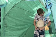 Poprvé spíme ve velkém stanu a taky používáme nový (40 let starý) vařič. Jedinou chybu má to, že jsme nevzali sirky.