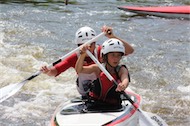 Soustředění v ne příliš vhodný termín, kdy se kanál hemží závodníky všech národností, připravujících se na ECA Junior Cup. Mamince jsme řekli, že to bude rodinná dovolená. Tak jsme tedy aspoň jezdili na bruslích a dojeli jsme do večerních Budějovic. Další den byly holky půl dne v Budějicích na prohůídce města. Největší atrakcí bylo "vestové plavání", kdy jsme skákali ve vestě a helmě do proudu. Postupně plavalo v kanálu tolik hlav, že bylo horší kličkovat mezi nimi než mezi brankami.