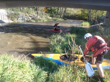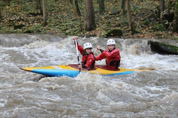 Vyrážíme jako jedni z prvních, ale jezdíme ve všech vracácích a proudech. Maminka převáží auto do Mladotic a jde nám naproti, pak se potkáváme a jdeme/jedeme spolu. V peřeji Martin je dostatek času mezi průjezdy dalších plavidel na to, abychom si tam trochu pojezdili. Mnozí se tady koupou, dokonce i na raftech, je to opravdu legrace.