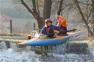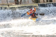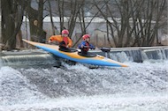 Focení pro HYDRO, borci skáčou jez bokem, předem, vody je málo, tma je brzo.